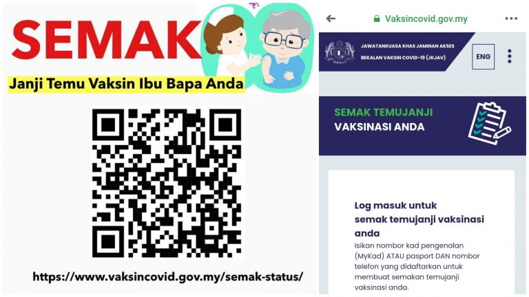 Semakan Tarikh Temujanji Vaksin COVID19 Ibu Bapa / Diri / Tanggungan