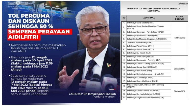Cara Dapat Tol Percuma Sempena Hari Raya, Tarikh & Senarai Laluan