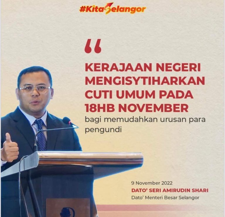 Selangor Umum Cuti Am 18 November 2022 Sempena PRU15